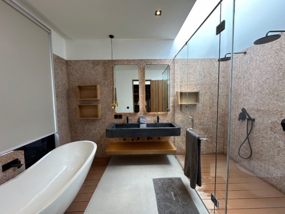 The commitment to quality continues throughout the villa with high-grade, moisture-resistant Teak wood used for all bedroom cabinetry, ensuring lasting beauty and durability. The home’s refined aesthetic is further elevated by a parquet-finished staircase and premium PVC doors. Adding to the convenience and luxury, all taps and sanitary fixtures are from the esteemed Roca brand, and a dedicated guest restroom is provided for added comfort.
