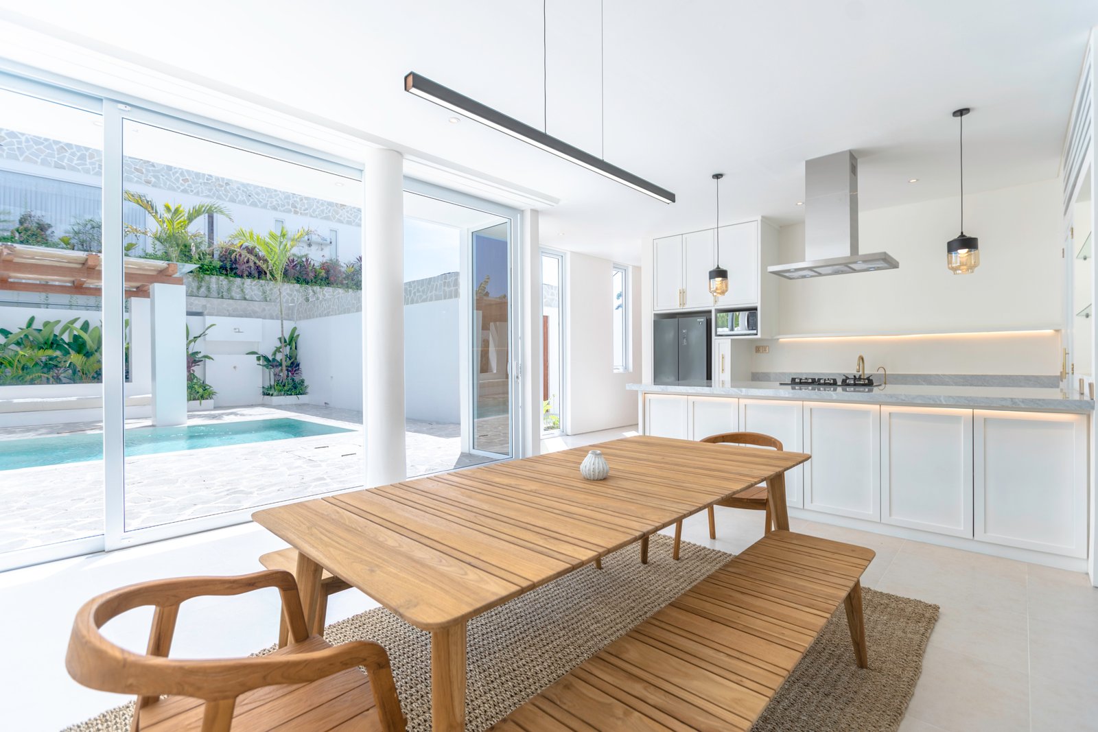 Designed for ultimate indoor-outdoor living, the villas are situated on sprawling plots where only 30% of the land is built upon, ensuring a massive private garden and a large pool for relaxation and entertainment. The experience is elevated to the extraordinary on the rooftop, which features a fully-equipped bar and entertaining area complete with a spa for refreshing bubbles—perfectly suited to Bali’s warm climate—along with a toilet and storage for convenience. Prospective buyers are highly encouraged to inspect the property on a sunny day to fully appreciate the stunning views that are a defining selling point of this remarkable offering.