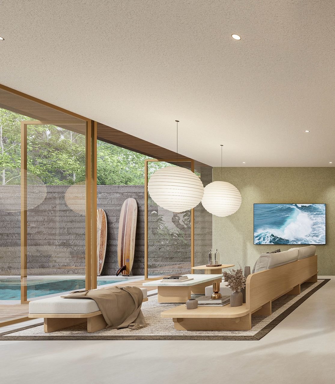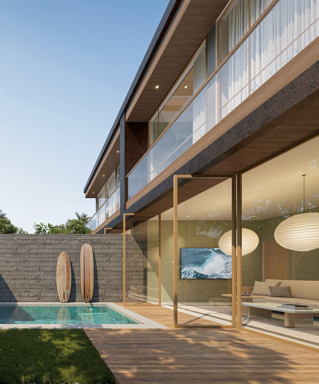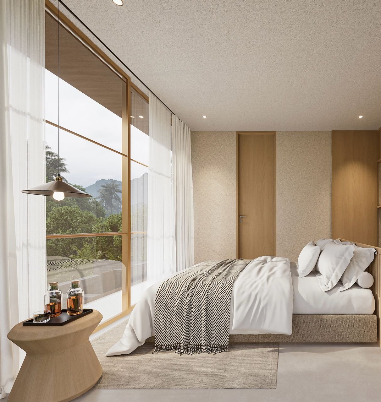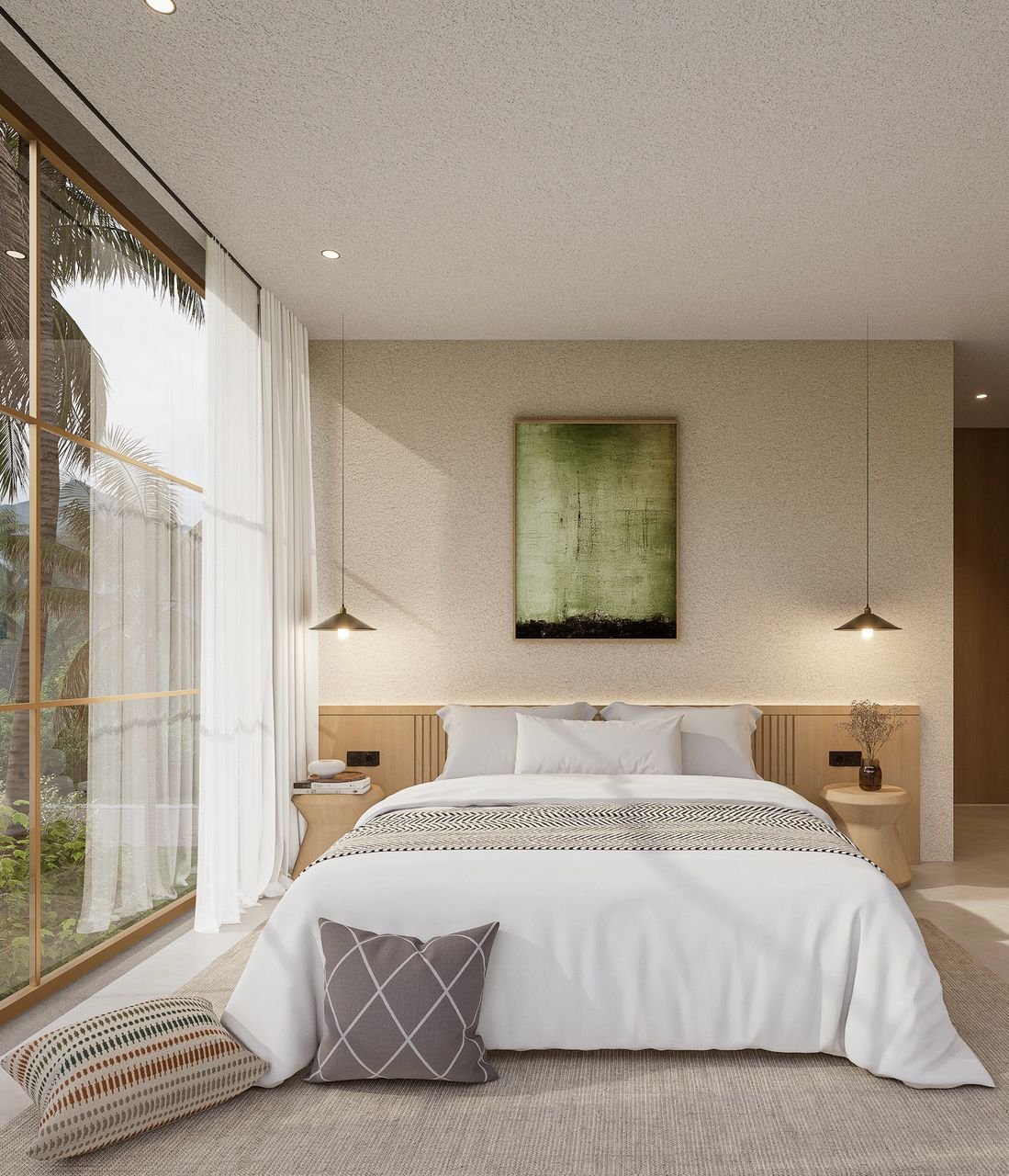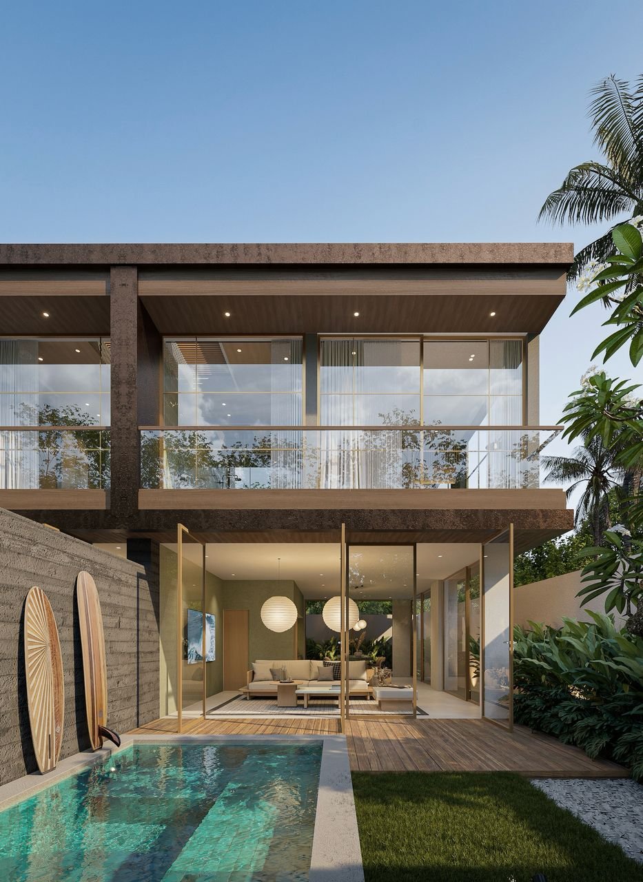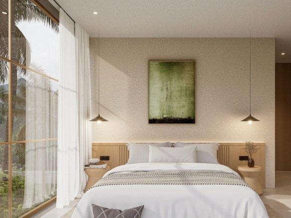 Designer 2 bedroom villa with modern minimal style. Industrial yet warm. Ocean view from bedroom, which is extremely rare in Bali nowadays.