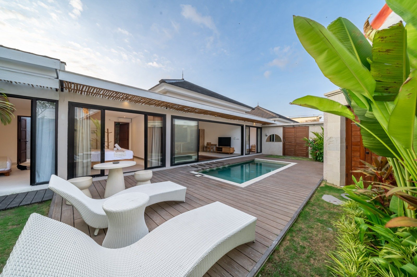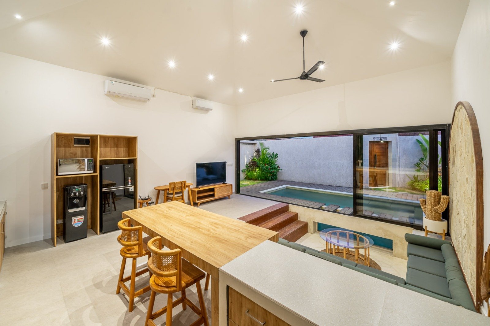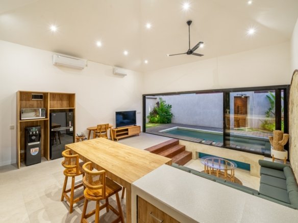 Step outside to enjoy your private pool and a small tropical garden, all within a quiet residential neighborhood. You’re just 10 minutes from Canggu’s cafés and 15 minutes to the beach, combining privacy with convenience.