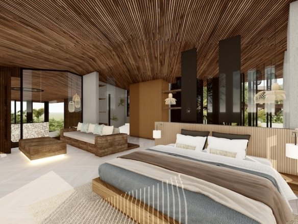 Nestled in the peaceful surroundings of Tumbak Bayuh, this upcoming villa is a statement of refined design and spacious comfort. Created by the renowned Biombo Architects and scheduled for completion in May 2025, the property offers a generous 828 sqm of living space, tailored for those seeking a high-end lifestyle in one of Bali’s most desirable residential areas.
