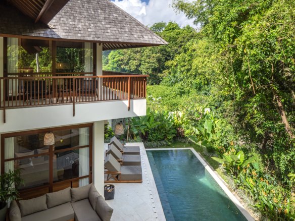 This is an exceptional investment opportunity: an exclusive 5-bedroom riverside villa with a unique Joglo pavilion, situated within a secured and prestigious tourism zone. The villa's prime west-facing orientation guarantees breathtaking sunset views over the river, creating an unparalleled living experience and a highly marketable rental feature for discerning guests.
