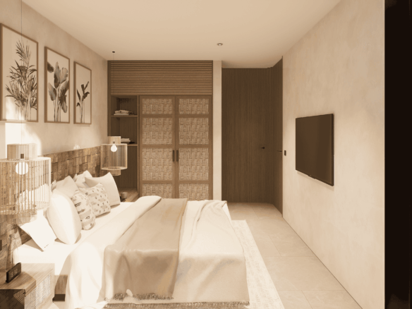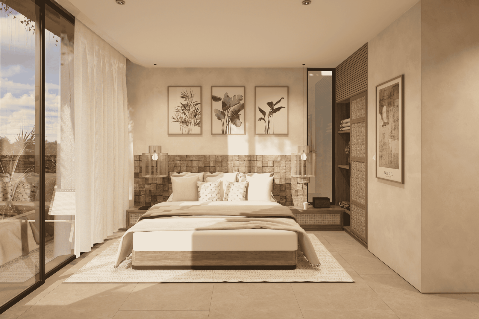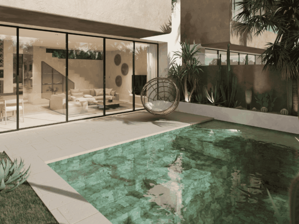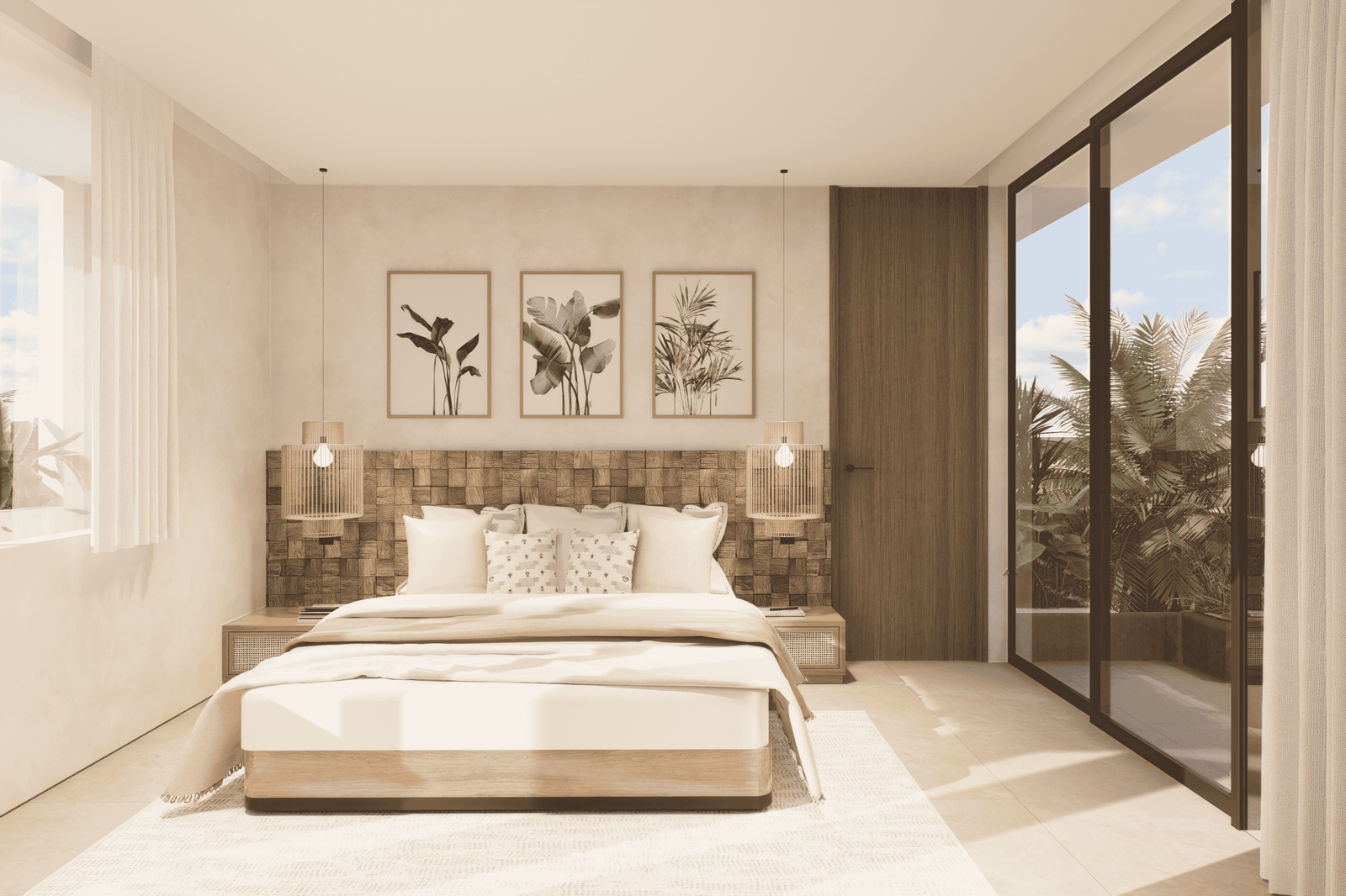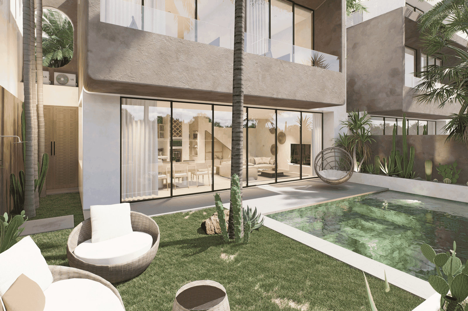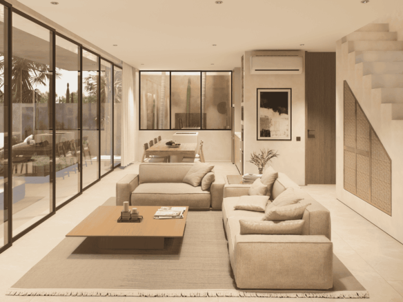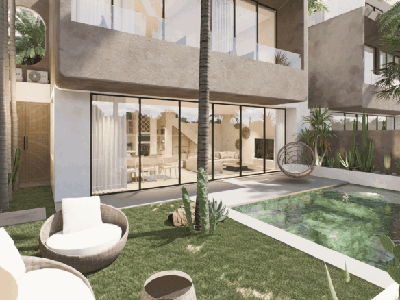 Just a 300-meter walk from the shore, these desert-inspired villas bring a refined sense of tranquility to every detail. Expansive floor-to-ceiling glass walls flood the interiors with natural light, creating a seamless connection between indoors and out.