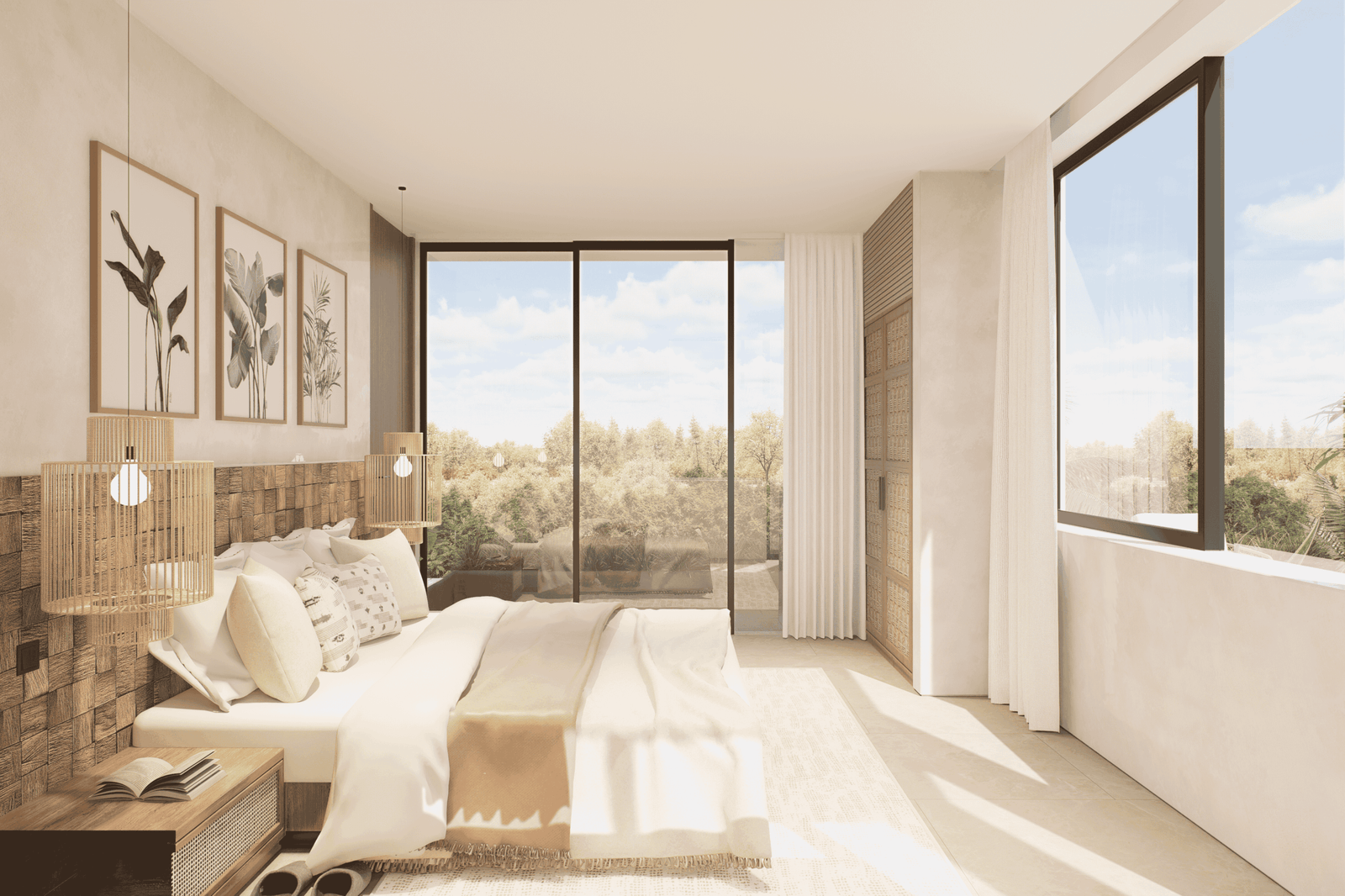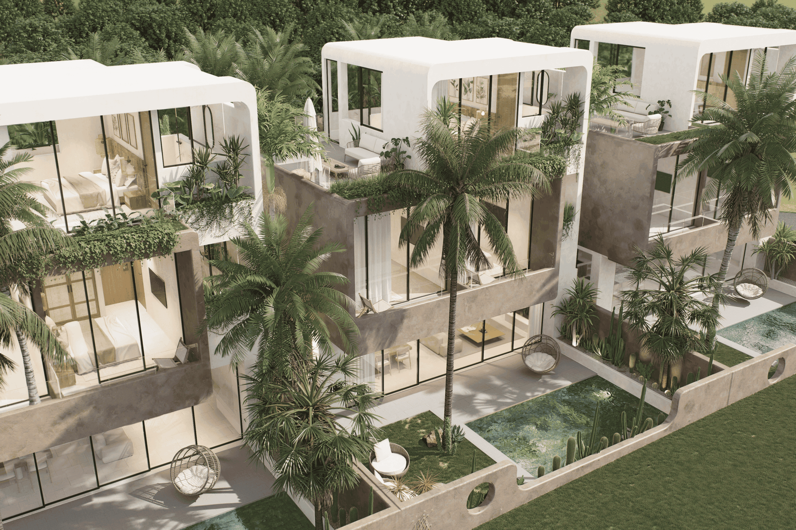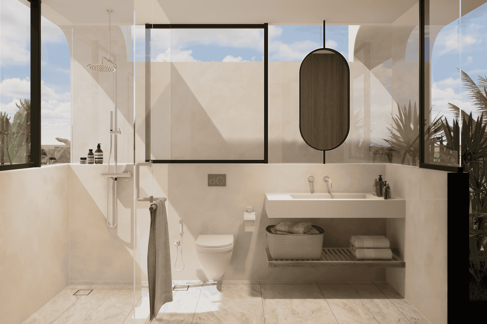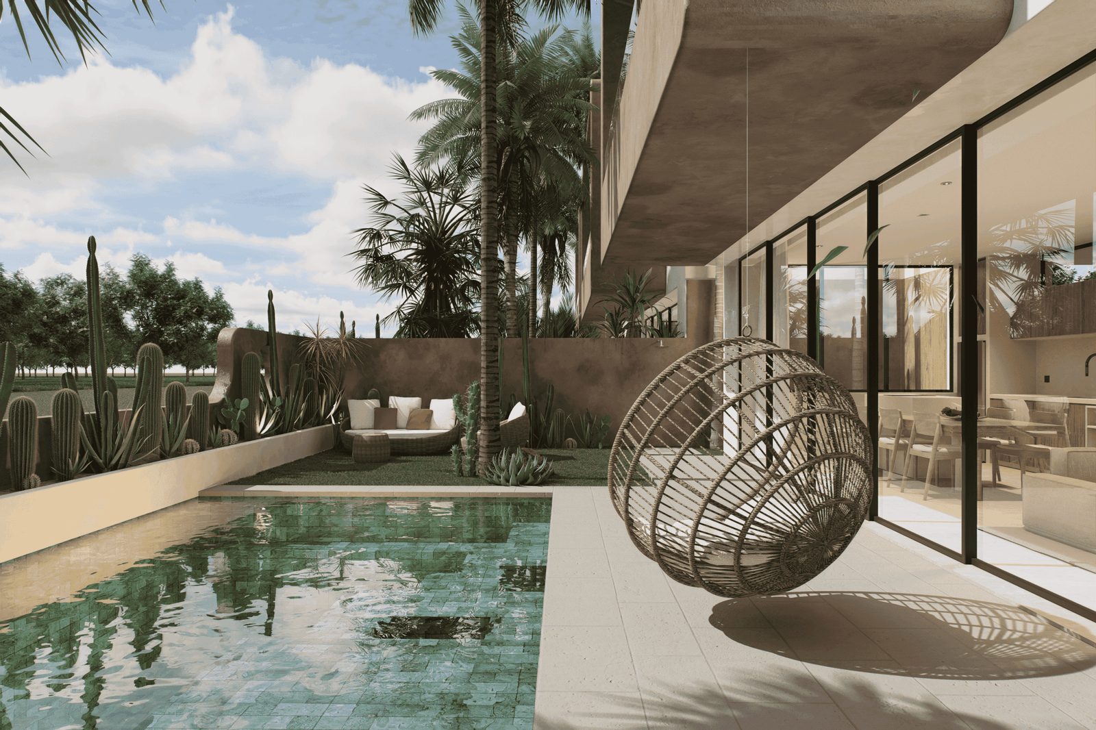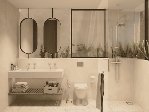 Just a 300-meter walk from the shore, these desert-inspired villas bring a refined sense of tranquility to every detail. Expansive floor-to-ceiling glass walls flood the interiors with natural light, creating a seamless connection between indoors and out.