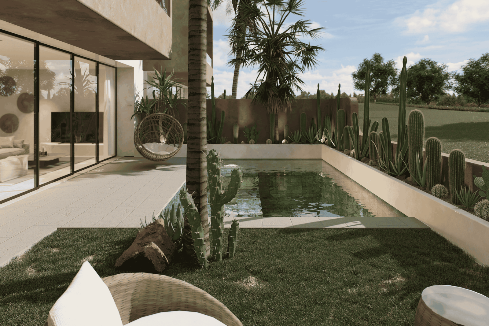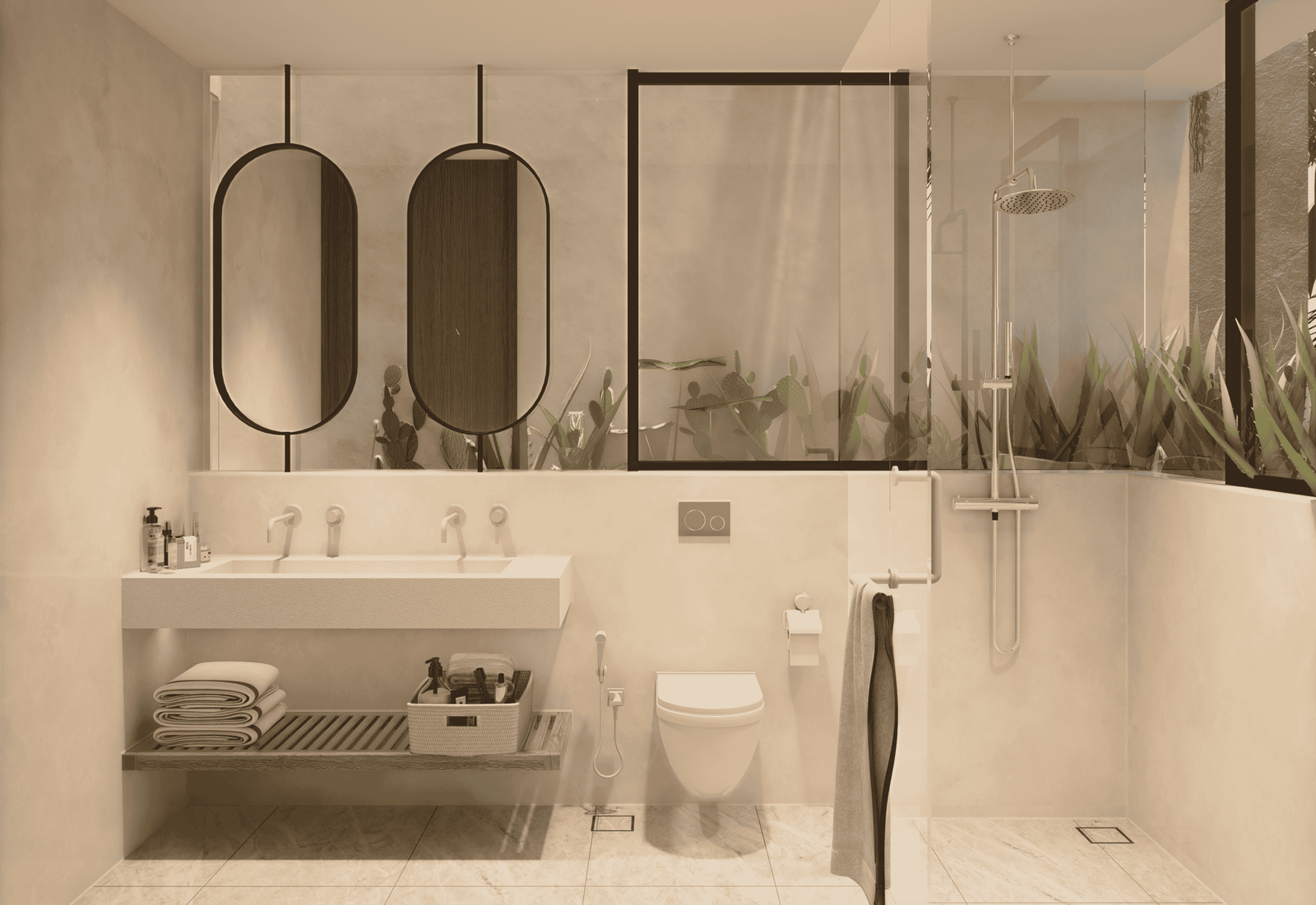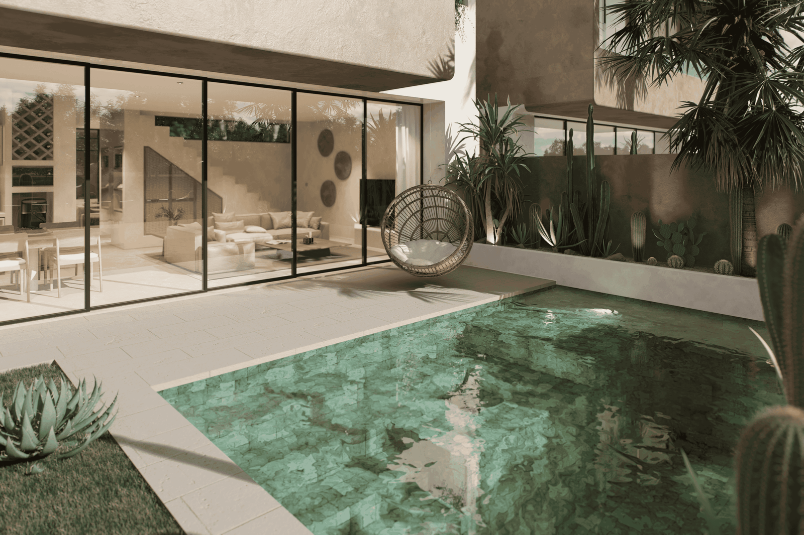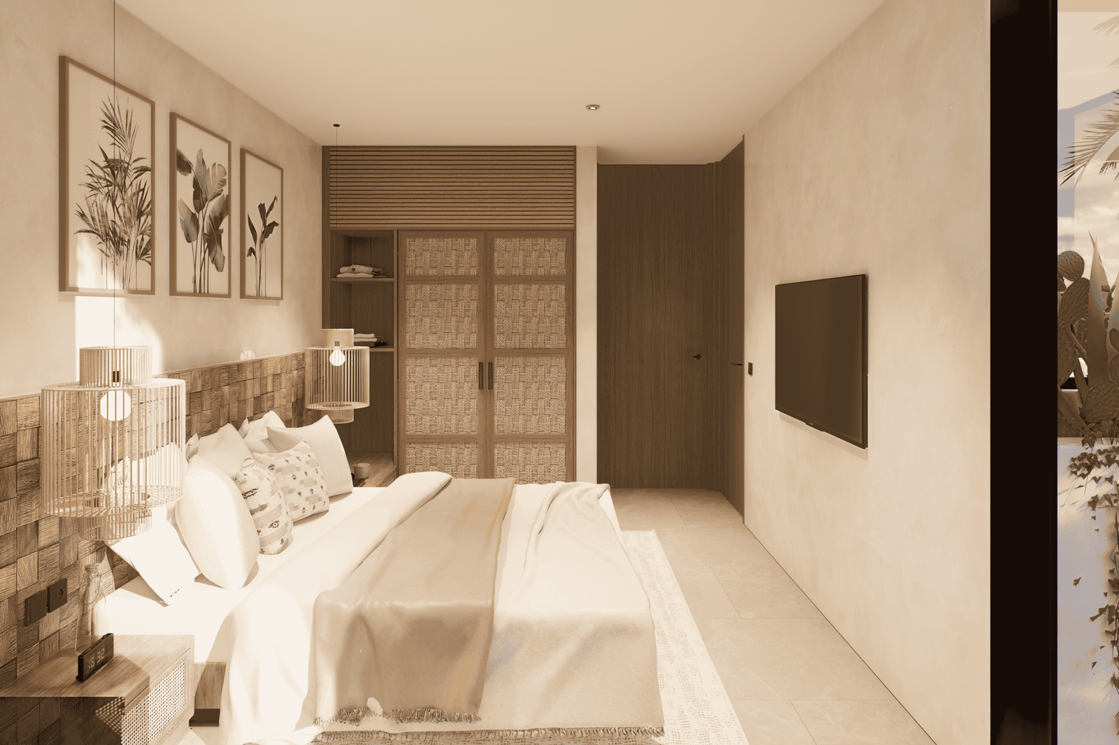 Just a 300-meter walk from the shore, these desert-inspired villas bring a refined sense of tranquility to every detail. Expansive floor-to-ceiling glass walls flood the interiors with natural light, creating a seamless connection between indoors and out.