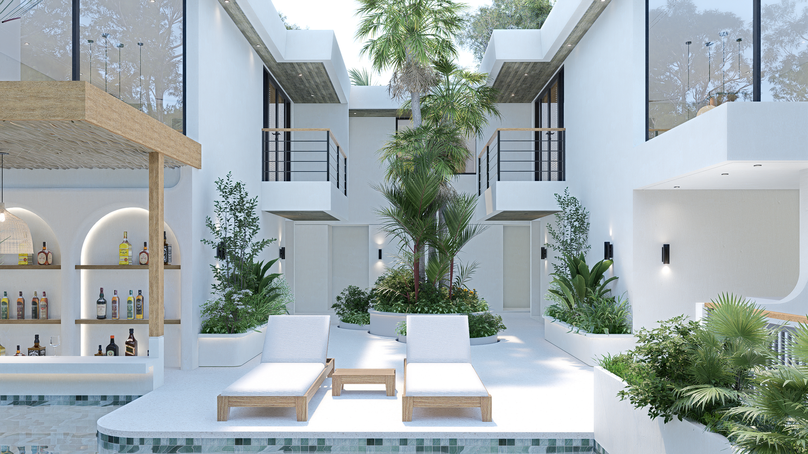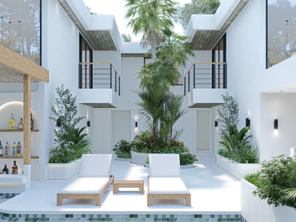 The development comprises only eight independent units, each meticulously designed to prioritize functionality, elegance, and a profound connection to the natural surroundings. Featuring a one-bedroom layout within a carefully planned contemporary architectural framework, each loft serves as an intimate private retreat. Residents and guests enjoy access to a curated collection of shared amenities, including a swimming pool, integrated bar, reception services, lush green areas, and private parking, fostering both community and tranquility.