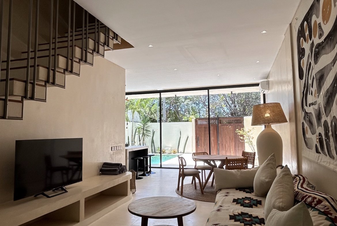 Discover a rare opportunity with this brand-new villa in the heart of vibrant Berawa. Perfectly positioned just a short walk from the beach, this beautifully designed 3-bedroom home offers the ultimate blend of modern comfort and tropical convenience, ideal as a private residence or a sound investment. The villa features an open-concept living area that flows seamlessly to a private pool and garden through floor-to-ceiling glass windows. Upstairs, three well-appointed bedrooms, including two with en-suite bathrooms, provide comfortable and private retreats. With its elegant design and prime location near Berawa’s best cafes and beach clubs, this villa delivers a truly unmatched Bali lifestyle.