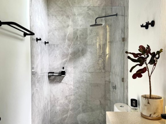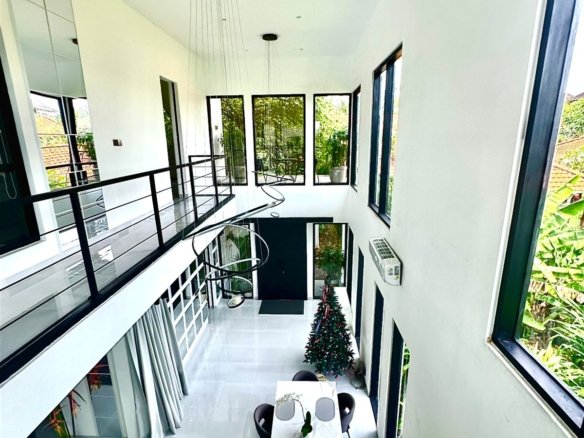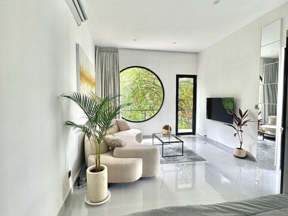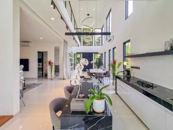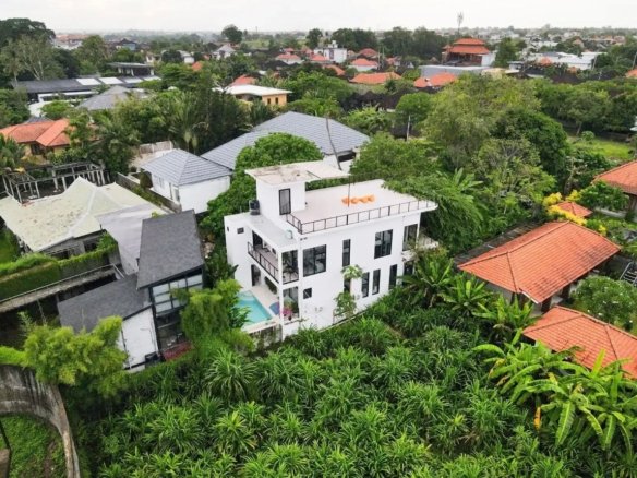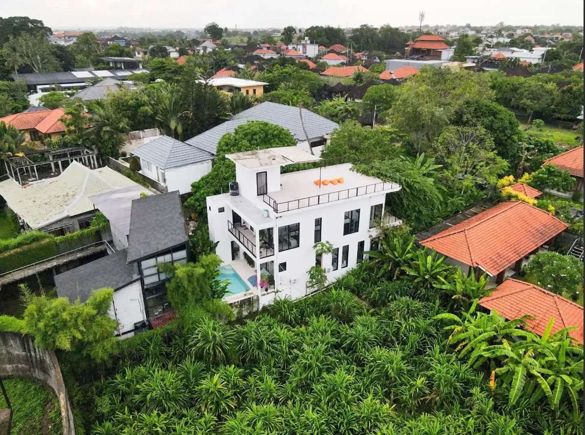 Outdoor living is truly elevated here, with two terraces and a breathtaking rooftop oasis. The 100m² rooftop is a standout feature, complete with a mini-kitchen and grill, ideal for sunset gatherings against a panoramic backdrop of lush rice fields and greenery. This unique property masterfully blends modern comforts, such as a 7.7 kW electricity capacity, with the peaceful, natural beauty of its Bali surroundings, offering a perfect luxury retreat.