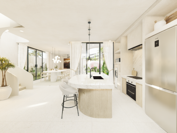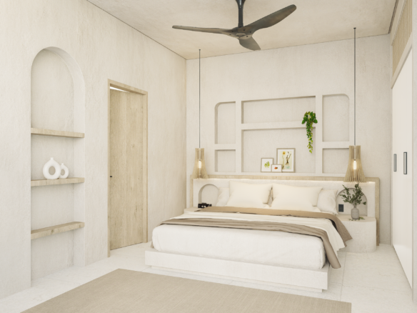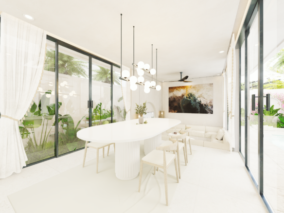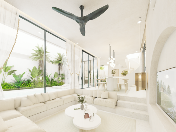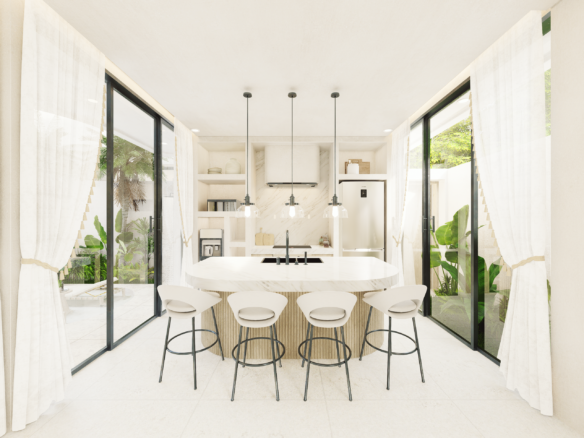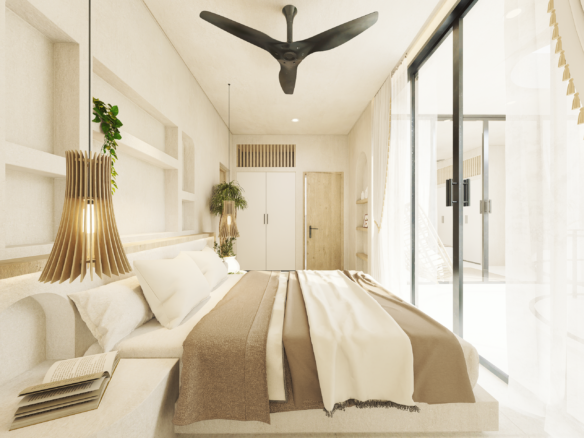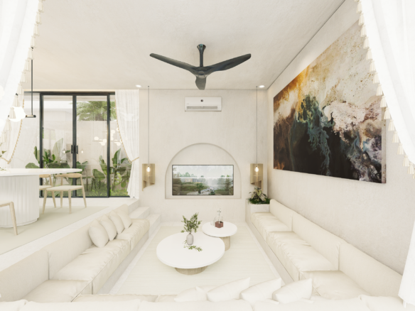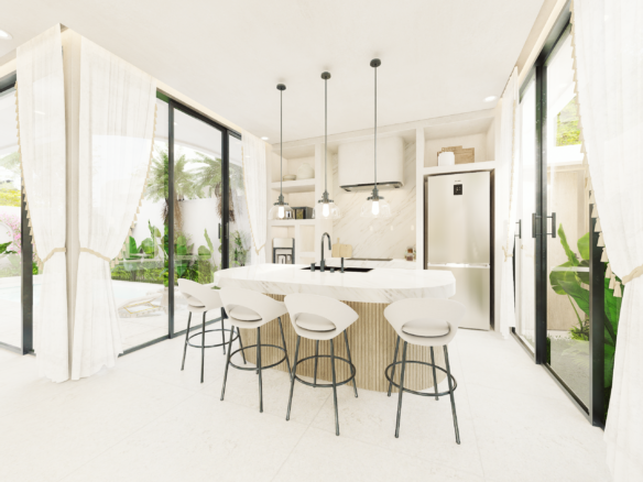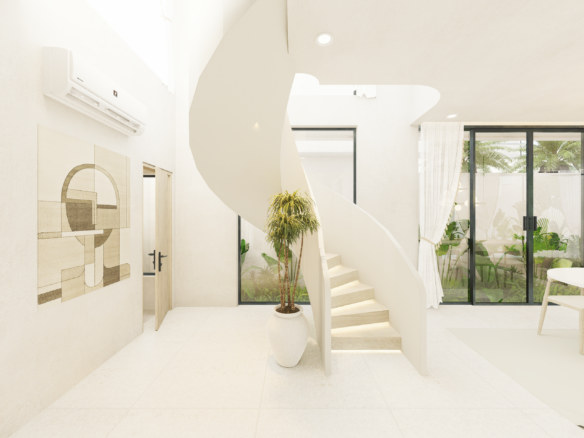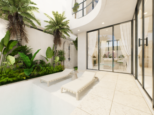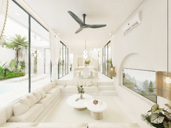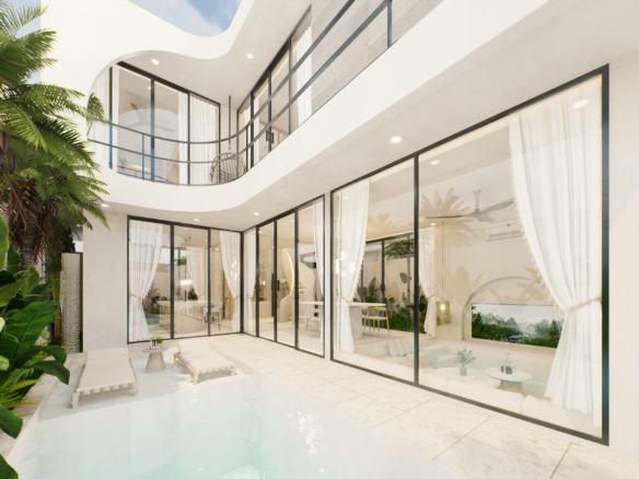 With only 6 units available, each villa sits on a 1.5 to 1.8 Are plot and features 130 m² of thoughtfully designed living space across two levels. Enjoy a bright, enclosed living area, a modern kitchen, and two spacious bedrooms with ensuite bathrooms—perfect for personal use or rental income. The villa also includes a private pool and an elevated terrace for enjoying Bali’s tropical views.