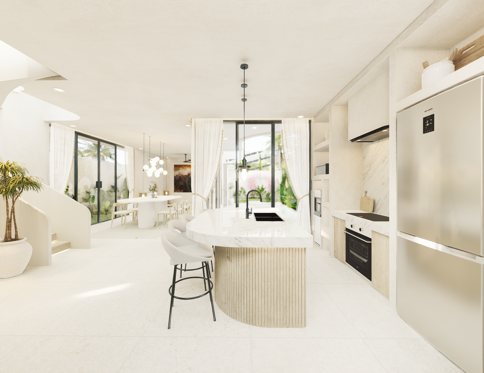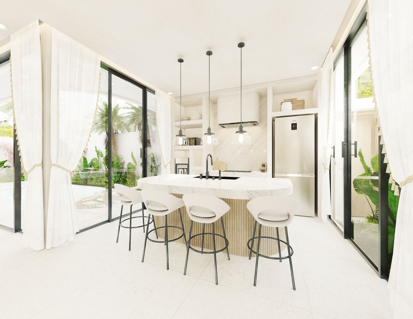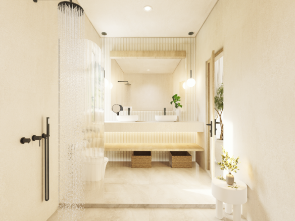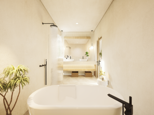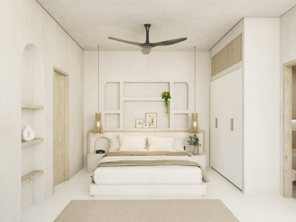 With only 6 units available, each villa sits on a 1.5 to 1.8 Are plot and features 130 m² of thoughtfully designed living space across two levels. Enjoy a bright, enclosed living area, a modern kitchen, and two spacious bedrooms with ensuite bathrooms—perfect for personal use or rental income. The villa also includes a private pool and an elevated terrace for enjoying Bali’s tropical views.