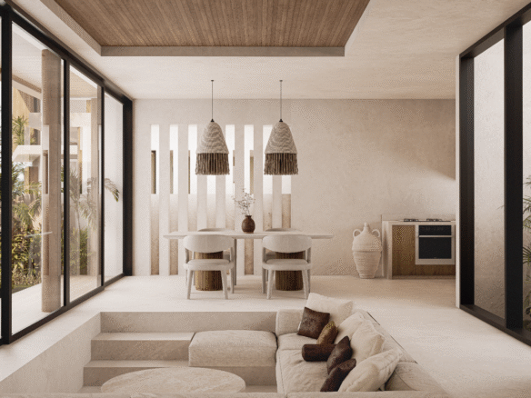 Situated in the heart of Bingin within the designated tourism zone, this modern Japandi-style villa presents a compelling investment opportunity in one of Bali’s most high-demand rental markets. Just minutes from Bingin Beach and surrounded by popular cafés, restaurants, gyms, and wellness hotspots, the location guarantees consistent guest demand and strong long-term value growth. Set on 1.6 Are of land with a generous 182 sqm building size, the villa features two thoughtfully designed bedrooms, each with its own ensuite bathroom for optimal comfort and privacy. The layout showcases a sunken living area, kitchen, and dining space that flow seamlessly to a private pool and lush garden, creating a bright, open atmosphere that resonates strongly with short-term renters. An additional second lounge on the upper floor enhances flexibility and rental appeal, while convenient motorbike parking adds everyday practicality. As an off-plan project with completion scheduled for May 2026, this villa offers investors the advantage of entering at an early stage, with strong potential for capital appreciation upon completion. Combining thoughtful design with a prime location, this property is an ideal choice for those seeking both steady rental income and long-term growth in Bali’s thriving hospitality market.