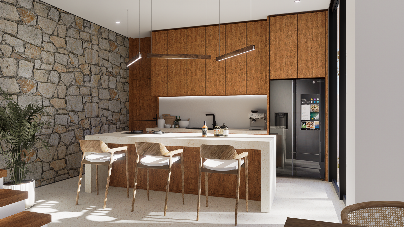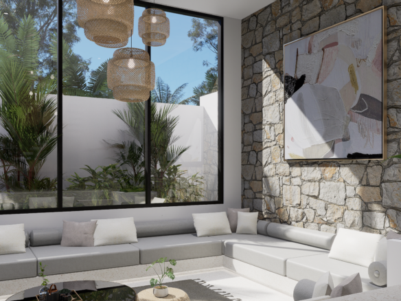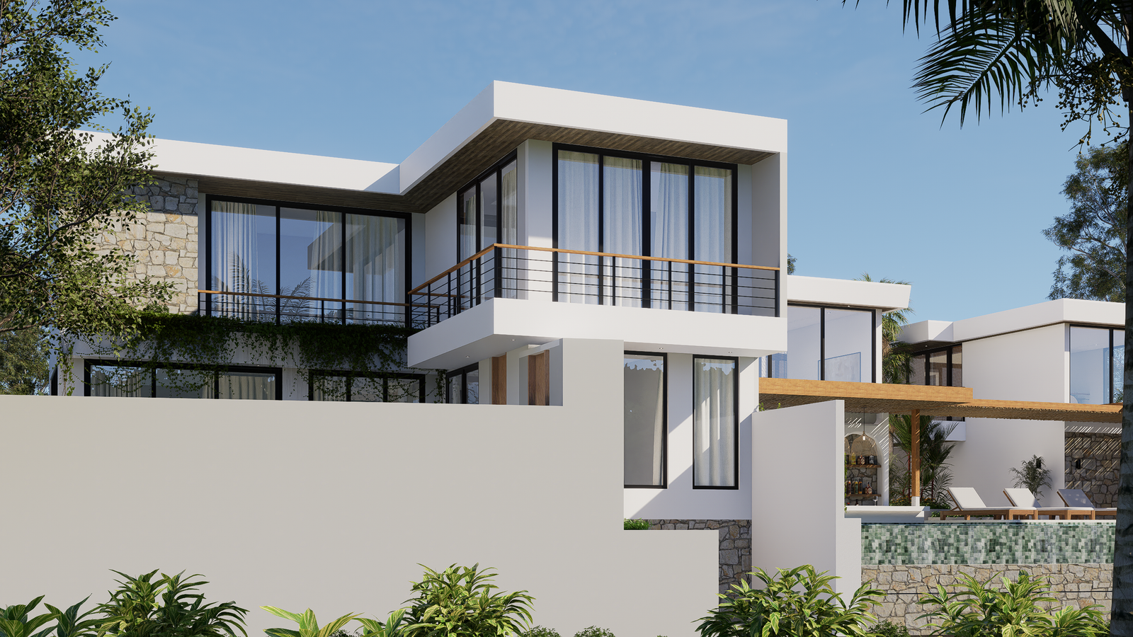 Life here is designed for seamless luxury and relaxation. The villa features two spacious bedrooms with luxurious ensuite bathrooms, ensuring privacy and comfort. Walls of glass open completely to a sun-drenched terrace and a private pool, all framed by lush tropical greenery. This creates an idyllic setting for both peaceful solitude and memorable entertaining, where the distinction between indoor comfort and outdoor paradise dissolves.