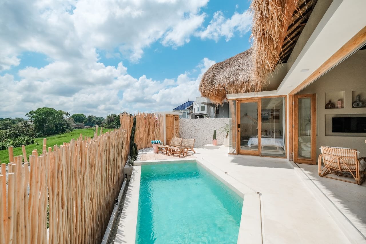Discover this charming tropical boho-style villa nestled in the peaceful village of Munggu—just a 10-minute drive to Seseh Beach and within easy reach of Canggu’s vibrant cafés, shops, and restaurants.